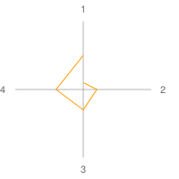 In a radar chart, data points are drawn evenly spaced, clockwise around the chart. The value of the point is represented as the distance from the center of the chart, where the center represents the minimum value, and the chart edge is the maximum value. Each series is drawn as one complete circuit of the chart. The chart connects these points with straight or curved lines, as you specify. So, a radar chart is essentially a line chart wrapped into a circle, where the y-axis goes from the center of the chart to the perimeter, and the x-axis is the perimeter of the chart, starting and ending at the 12:00 line.